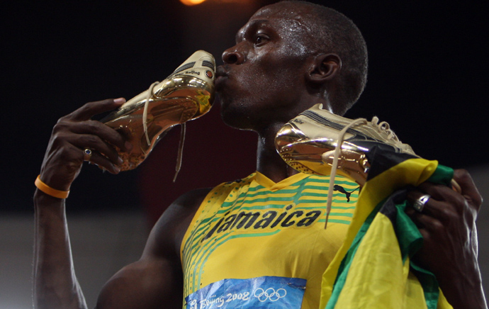 當(dāng)日,博爾特在國家體育場“鳥巢”進(jìn)行的北京奧運(yùn)會男子100米決賽中以9秒69的成績奪得金牌并打破9秒72的世界紀(jì)錄。