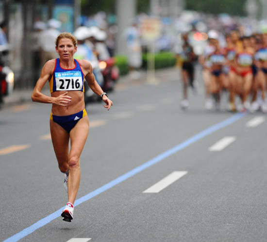 馬尼亞的38歲老將托梅斯庫·迪塔今天在北京奧運(yùn)會(huì)女子馬拉松比賽中一路領(lǐng)先,以2小時(shí)26分44秒的成績(jī)獲得冠軍,我國(guó)選手周春秀以2小時(shí)27分07秒獲得銅牌,成績(jī)僅比肯尼亞的卡·恩德雷巴慢了1秒。 我國(guó)選手朱曉琳獲得了第四名,成績(jī)是2小時(shí)27分16秒。世界紀(jì)錄保持者、英國(guó)35歲的老將拉德克里夫在比賽中一度停下退出,但隨之又鼓足氣力堅(jiān)持了下來,她最終雖然僅獲得第23名,但頑強(qiáng)的精神贏得了觀眾的喝彩。 在今天的比賽中,托梅斯庫·迪塔在跑過20公里后,突然變速,甩開眾人形成單一箭頭,到了25公里時(shí)已經(jīng)把第一集團(tuán)拉下了30秒。周春秀和朱曉琳一直埋伏在第一集團(tuán)里面,英國(guó)老將拉德克里夫在跑過25公里后就掉了下來。 托梅斯庫·迪塔的個(gè)人最好成績(jī)?yōu)?小時(shí)21分30秒,本賽季最好成績(jī)是2小時(shí)27分45秒。上屆奧運(yùn)會(huì)上,她排名20位。賽前,她并不是奪標(biāo)的熱門人物,比她成績(jī)好的選手超過10位,但是,今天在綿綿小雨中,這位羅馬尼亞老將狀態(tài)甚佳,她通過35公里處的成績(jī)是2小時(shí)02分整,將她身后跟著的第一集團(tuán)的8名選手甩下100多米。隨后,她將優(yōu)勢(shì)一直保持到終點(diǎn),比較輕松地贏得了金牌。 銀牌的較量非常激烈,還剩最后三公里時(shí),周春秀和朱曉琳頑強(qiáng)地和肯尼亞的瑪·科穆和恩德雷巴較量,四人緊緊咬住,誰也甩不開誰。進(jìn)入鳥巢后,周春秀在最后250米處沖刺超越恩德雷巴,但肯尼亞人在最后一個(gè)彎道上實(shí)行了反超。兩人一直較量得難解難分,最終,周春秀以1秒之差失去銀牌。