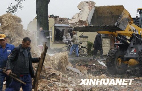 8月16日,在波蘭南部的切爾采奧波爾斯基附近,人們在清理被龍卷風(fēng)毀壞的房屋廢墟。據(jù)波蘭有關(guān)部門說,一場龍卷風(fēng)15日襲擊了波蘭一些地區(qū),造成3人死亡,另有數(shù)人受傷。 新華社/路透