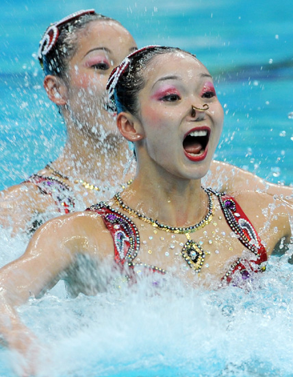 北京奧運會花樣游泳比賽18日下午開賽,在首日進(jìn)行的雙人預(yù)賽技術(shù)自選比賽中,有三支隊伍都派出“姊妹花”參賽。除了中國的雙胞胎組合蔣文文、蔣婷婷外,還有新西蘭的一對姐妹和荷蘭的一對雙胞胎。 三對姐妹中,最先出場的是新西蘭選手——26歲的尼娜·丹尼爾斯和23歲的麗莎·丹尼爾斯。她們完成了一套名叫《烏克蘭人》的動作,得分列24對選手中的第23位。 “我們覺得今天表現(xiàn)不錯,”姐姐尼娜賽后說,“這是24年來新西蘭第一次參加奧運會花游比賽,我們希望能夠推動這項運動在新西蘭的發(fā)展! 荷蘭選手比安卡·范德費爾登和索尼婭·范德費爾登是一對雙胞胎,她們選擇了雄壯的合唱曲《布蘭詩歌》為自己伴奏,整個表演蕩氣回腸,最終名列第十!拔覀兊谋憩F(xiàn)跟音樂一樣棒,我們教練很開心!北劝部ㄔ谫惡笳f。 中國選手蔣文文/蔣婷婷的最后得分列第四位!拔医裉煸诮Y(jié)束動作的時候重心不穩(wěn),有點小紕漏,不過明天肯定會有所提高!笔Y文文賽后說。蔣婷婷也說:“沒關(guān)系,明天肯定會更好,我們有信心!