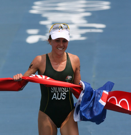 8月18日,北京奧運(yùn)會(huì)鐵人三項(xiàng)女子組決賽在北京十三陵水庫(kù)舉行,澳大利亞選手斯諾西爾奪得金牌。