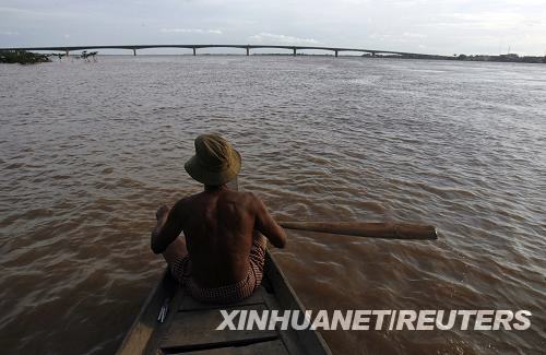 8月16日,在柬埔寨磅湛省,一名男子在洪水中劃船。連日暴雨造成流經(jīng)東南亞多國(guó)的湄公河水位上漲。柬埔寨官員說(shuō),他們已向磅同、桔井和上丁三省內(nèi)湄公河附近居民發(fā)出警告,要求民眾遷往地勢(shì)較高地區(qū)。新華社/路透