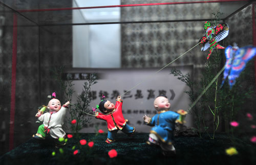 這是百工坊里的民間工藝大師“京城面人由”制作的面塑《三子放風(fēng)箏》(8月17日攝)。