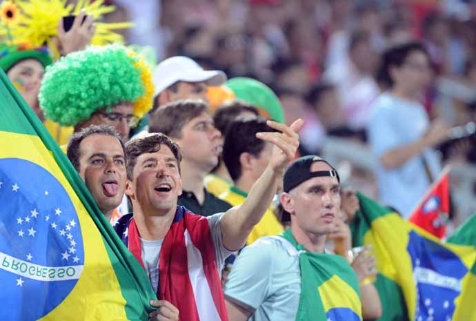 8月18日,巴西球迷。當日,北京奧運會沙灘排球1男子/4決賽結(jié)束。
