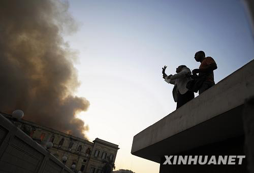 8月19日,兩名埃及記者爬到高處觀察埃及議會上議院大樓失火情況。當(dāng)日,埃及議會上議院大樓發(fā)生火災(zāi),樓內(nèi)冒出滾滾濃煙。據(jù)埃及電視臺報道,火災(zāi)目前已造成至少13人受傷。