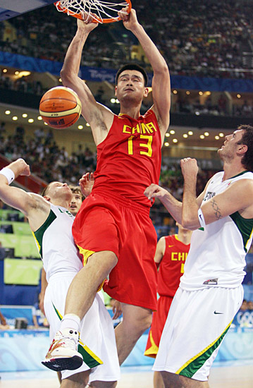 在第二節(jié)被拉開分差后,遭遇“砍姚”的中國男籃未能續(xù)寫神奇,在20日的四分之一決賽中68:94再次被雅典“克星”立陶宛隊(duì)淘汰,這也是男籃第三次獲得奧運(yùn)會第八名。 依據(jù)規(guī)則,在四分之一決賽中被淘汰的四支球隊(duì)將不再比賽,根據(jù)小組賽中的勝負(fù)場次排名,男籃小組賽5戰(zhàn)2勝3負(fù)積7分在八強(qiáng)中戰(zhàn)績最差,只能位列第八。中國男籃此前最好的成績是1996年亞特蘭大奧運(yùn)會和2004年雅典奧運(yùn)會的第八名。 男籃在雅典奧運(yùn)會四分之一決賽中就75:95不敵立陶宛隊(duì)被淘汰,本場比賽如出一轍。上場33分鐘的姚明全場被“砍姚”戰(zhàn)術(shù)夾防,最多時(shí)遭到對方4名隊(duì)員“合抱”,打滿第一節(jié)竟一分未得。不過,他還是拿下了全隊(duì)最高的19分和7個(gè)籃板、3次助攻!耙粚σ缓茈y防姚明,我們今天對他的夾防是贏球的關(guān)鍵!”立陶宛隊(duì)主教練布陶塔斯說。而姚明賽后也說,“他們的防守給了我們很大壓力,內(nèi)、外線出手都很艱難! 男籃本場所有隊(duì)員全部上場,在觀眾的歡呼中拼到最后,但還是倒在了對方精巧的聯(lián)防和燙手的外線遠(yuǎn)投之下。對手的3分球31投13中命中率42%,中國男籃只有21投4中19%的命中率,中投47%的命中率也低于對手的66%。立陶宛隊(duì)4名隊(duì)員得分上雙,雅斯科維休斯拿下全場最高23分。 中國隊(duì)本場首發(fā)姚明、易建聯(lián)、孫悅、朱芳雨、劉煒。被“砍”的姚明以其積極的防守和籃板球?yàn)槿珗瞿孟?1分的易建聯(lián)和孫悅、劉煒等創(chuàng)造了機(jī)會。孫悅2罰全中為中國隊(duì)首開紀(jì)錄,在對手4:4平兩記3分打出6:0小高潮后,男籃外線孫悅、劉煒的中遠(yuǎn)投隨后9:0反攻,立陶宛隊(duì)?wèi){借西斯考斯卡斯第一節(jié)結(jié)束前的壓哨3分才將比分反超為19:17。 在姚明3罰1中和一次籃下強(qiáng)打?yàn)橹袊谢@第二節(jié)開局后,立陶宛隊(duì)防守達(dá)到極致,讓男籃5分內(nèi)鐘僅得4分,單節(jié)也僅得到13分,很難找到出手機(jī)會,外線僅投出2記3分球,命中率為0,失誤卻高達(dá)7次,其中朱芳雨和王仕鵬就有5次。在接連打出7:0和9:0兩個(gè)高潮后,又是西斯考斯卡斯在第二節(jié)結(jié)束前的3分將分差擴(kuò)大到了11分(41:30)。 面對立陶宛隊(duì)第三節(jié)精準(zhǔn)的3分球,男籃依靠內(nèi)線強(qiáng)攻和偶爾的外線遠(yuǎn)投,單節(jié)也拿下了23分,只比對手單節(jié)得分少6分。但是,男籃在末節(jié)屢投不中、失誤不斷,讓對手獲得了太多的空位3分機(jī)會。姚明在距離比賽結(jié)束4分鐘前被換下場,全場拿下10分的劉煒,在最后10秒投出3分不中結(jié)束了男籃奧運(yùn)征程。 雖然無緣四強(qiáng),但男籃的表現(xiàn)卻好于四年前!叭绻谢@是四年前的狀態(tài),我們今天會輸?shù)酶!”尤納斯說。而姚明在被問及是否會打下一屆奧運(yùn)會的回答,也讓人們對男籃有了更多期待,他說“我有這么老嗎?”