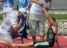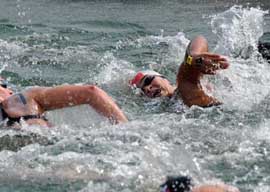 不像室內(nèi)游泳比賽每個(gè)選手都有專門水道,馬拉松游泳選手們沒有屬于自己的賽道,她們擠在一起游泳難免碰手碰腳,搶占優(yōu)勢(shì)位置也很有講究。 在20日的女子馬拉松游泳比賽中,很多選手上岸后都在抱怨別人的不是。銅牌得主、英國(guó)選手帕滕在水中弄傷了腳,她說(shuō):“我身上的每個(gè)部位都疼,水里有一些拉人動(dòng)作!苯鹋频弥鳌⒍砹_斯選手伊利琴科曾與兩位巴西選手并駕齊驅(qū),她說(shuō):“這兩個(gè)人太有進(jìn)攻性了,行為舉止接近非體育精神的邊緣,這是游泳,不是拳擊!