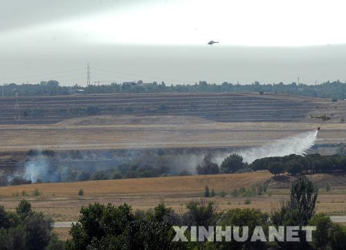 8月20日,一架消防直升機(jī)在西班牙馬德里機(jī)場(chǎng)的飛機(jī)失事現(xiàn)場(chǎng)滅火。當(dāng)日下午,西班牙航空公司的一架客機(jī)在馬德里機(jī)場(chǎng)起飛時(shí)沖出跑道并起火。據(jù)當(dāng)?shù)鼐仍藛T說(shuō),事故已造成146人死亡,20多人受傷。 | |