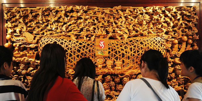 廣東的“祥云小屋”里,三位雕藝師用一年多時間制作而成的潮州木雕《百鳥歸巢》讓人嘆為觀止。奧運(yùn)會和殘奧會期間,北京奧組委和文化部共同主辦以“中國故事”為主題的大型文化展示活動。在奧林匹克公園的30多個“祥云小屋”里,以實(shí)物、多媒體視聽藝術(shù)、現(xiàn)場手工藝展示等方式講述的“中國故事”,展示了中國各地的文化遺產(chǎn)和多姿多彩的民族民間文化。