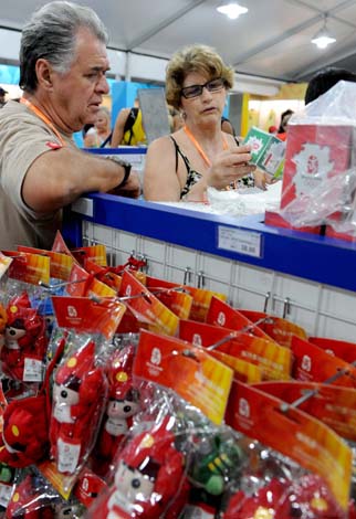 8月20日,幾位外國朋友在北京奧運村商業(yè)文化街選購奧運紀念品。隨著北京奧運會比賽項目逐個結(jié)束,北京奧運村商業(yè)文化街特許商品生意更加紅火,來自世界各地的賓朋紛紛來到這里選購奧運紀念品。
