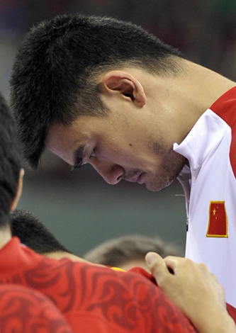 8月20日,在北京五棵松奧林匹克籃球館進(jìn)行的北京奧運(yùn)會(huì)男籃1/4決賽中,中國(guó)隊(duì)以68比94不敵立陶宛隊(duì)。這是中國(guó)男籃隊(duì)員姚明。