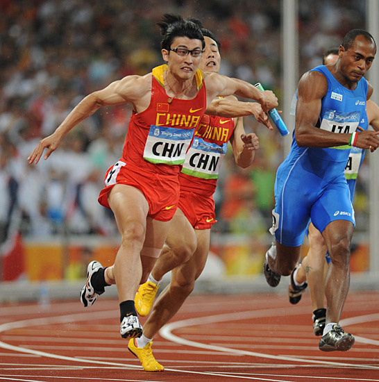 21日晚,中國男子4×100米接力歷史性闖入奧運(yùn)會(huì)決賽! 當(dāng)晚,北京奧運(yùn)會(huì)男子4×100米預(yù)賽在“鳥巢”進(jìn)行,中國隊(duì)分在第二組,四棒依次為溫永毅、張培萌、陸斌、胡凱,他們?cè)谌珗鲇^眾的吶喊聲中,跑出39秒13,名列小組第四,幸運(yùn)晉級(jí)決賽。 同一組的牙買加隊(duì)名列小組第一,成績?yōu)?8秒31,這也是牙買加隊(duì)的本賽季最好成績。先后打破100米與200米世界紀(jì)錄的博爾特沒有出場,前世界紀(jì)錄保持者鮑威爾壓軸跑第四棒。加拿大隊(duì)與德國隊(duì)分列這一小組的第二、第三名。 在男子4×100米預(yù)賽第一小組,特立尼達(dá)和多巴哥、日本、荷蘭、巴西成功進(jìn)入決賽,長期在這個(gè)項(xiàng)目上保持優(yōu)勢的美國隊(duì)再一次出現(xiàn)配合失誤,掉棒遭到淘汰。 除了美國隊(duì)外,第一組的南非隊(duì)、波蘭隊(duì)和尼日利亞也未能完成比賽;在第二組的比賽中,英國和意大利也同樣因?yàn)檫`規(guī)而被取消成績,在奧運(yùn)歷史上,同時(shí)有6支隊(duì)伍無成績也實(shí)屬罕見。 在進(jìn)入決賽的8支隊(duì)伍中,中國隊(duì)的成績排在最后一名。胡凱表示:“明晚決賽起碼不要墊底,我們肯定拼了!”