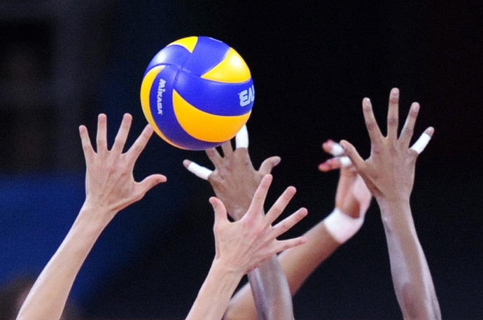 8月23日,雙方球員在比賽中。當日,在北京奧運會女排決賽中,巴西隊以3比1戰(zhàn)勝美國隊,獲得冠軍。