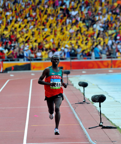 肯尼亞選手塞繆爾·卡馬烏在男子馬拉松比賽中以2小時(shí)06分32秒的成績奪得金牌并打破奧運(yùn)會(huì)紀(jì)錄。