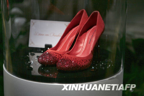 9月5日,在美國紐約舉行的梅賽德斯—奔馳時裝周上,戴安·馮菲爾斯滕貝格設(shè)計的紅鞋在紀(jì)念《綠野仙蹤》的展覽上展示。童話《綠野仙蹤》中的女主角多蘿西擁有一雙魔法紅鞋,兩只鞋碰三下就可以帶鞋的主人去任何想去的地方。 新華社/法新