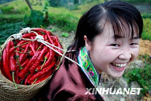 廣西融水縣桿洞鄉(xiāng)花孖苗寨的辣椒多植于深山中,肉厚香甜、辣度適中。今年以來(lái),當(dāng)?shù)卣M織村民成立辣椒生產(chǎn)專業(yè)合作社,在技術(shù)上統(tǒng)一指導(dǎo)并包銷產(chǎn)品,使全寨的辣椒產(chǎn)量和質(zhì)量都有大幅提高。 |