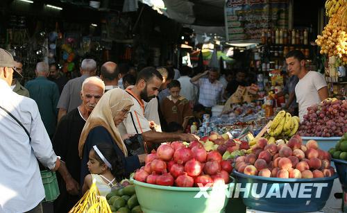 9月24日,巴勒斯坦人在加沙城中的老市場里買水果。齋月即將結(jié)束,巴勒斯坦人也開始采購物品準備迎接開齋節(jié)。