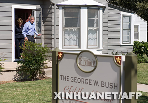 10月4日,美國總統(tǒng)布什攜夫人勞拉來到其位于得克薩斯州米德蘭城的兒時住所。新華社/法新