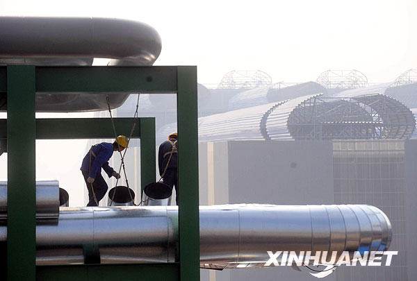 10月13日,工人在首鋼京唐鋼鐵廠緊張施工。