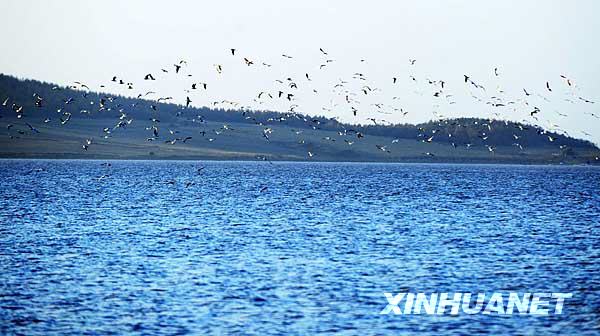 深秋時(shí)節(jié),數(shù)以千計(jì)的水鳥聚集在黑龍江省密山市青年水庫,在秋日暖陽下,鳥兒在水中嬉戲、覓食。