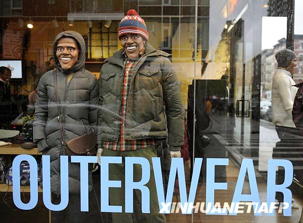 10月28日,在美國紐約的一家服裝店里,做成美國民主黨總統(tǒng)候選人奧巴馬模樣的模特身著冬裝,笑迎顧客。美國總統(tǒng)選戰(zhàn)如火如荼,商家們想出此絕活招攬顧客,成為一景。新華社/法新