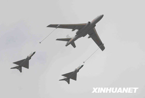 11月5日,一架轟油6和兩架殲8D飛機(jī)表演空中加油。 當(dāng)日,第七屆中國(guó)國(guó)際航空航天博覽會(huì)進(jìn)入第二天,“中國(guó)航空日”的各項(xiàng)飛行表演和展覽精彩紛呈。本屆珠海航展將于本月9日結(jié)束。