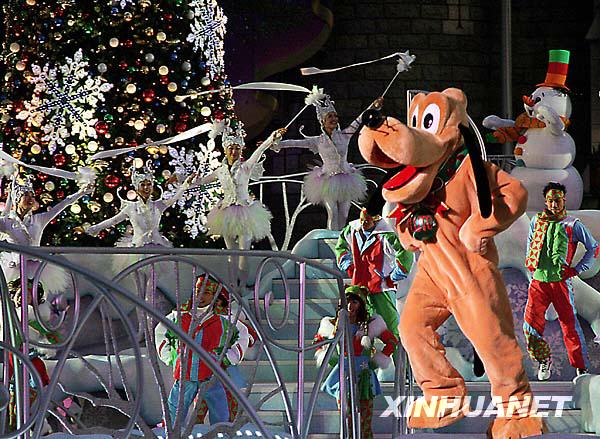 11月7日,在日本千葉縣浦安市,東京迪斯尼樂園為游客表演圣誕新節(jié)目--米奇的歡樂下雪時光。隨著圣誕節(jié)的臨近,東京迪斯尼樂園的圣誕季慶典活動7日已拉開了序幕。裝點(diǎn)一新的樂園、盛裝的卡通人物向游人宣布了圣誕季的到來。今年的圣誕季活動將一直持續(xù)到12月25日。