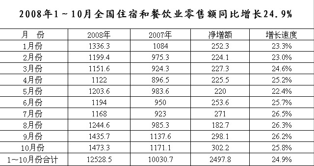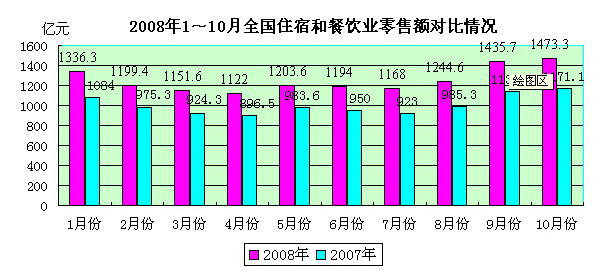 附:2008年1-10月全國(guó)住宿和餐飲業(yè)零售額圖表