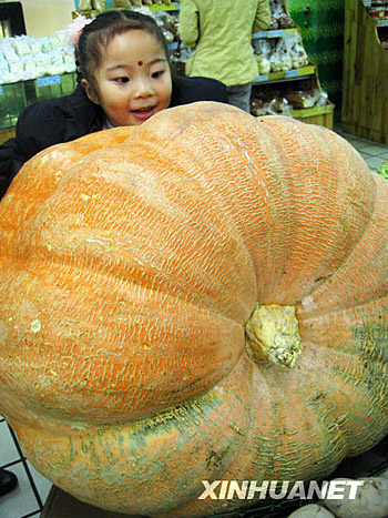 11月20日,西寧市的一名小朋友被巨型“太空南瓜”吸引。近日,青海省西寧市一家超市展出一個重達50多公斤的巨型“太空南瓜”,吸引了眾多顧客駐足觀看。