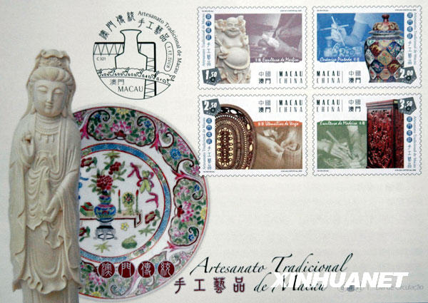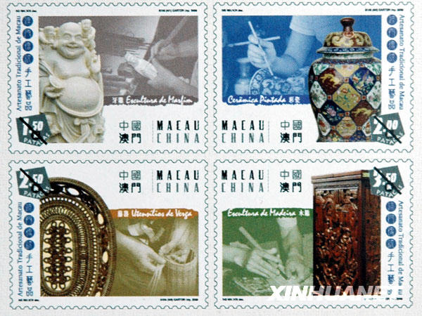 圖為郵票。12月1日,澳門特區(qū)政府郵政局發(fā)行澳門傳統手工藝品新郵品及《十二生肖》專題郵折。