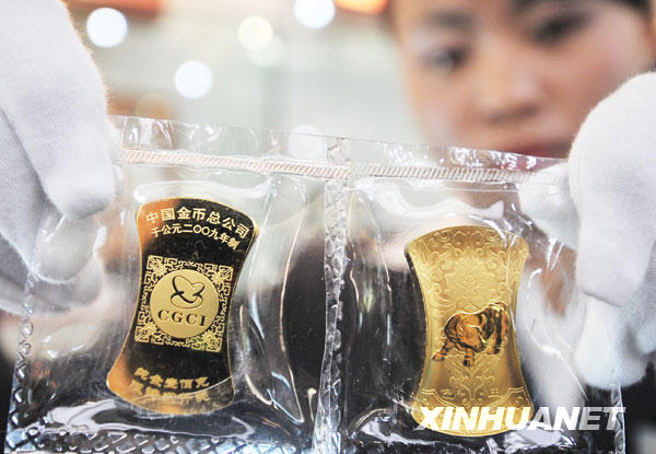 12月1日,在位于蘭州的甘肅省錢幣博物館,一位服務(wù)人員在展示“牛年賀歲”金鋌。隨著農(nóng)歷“牛年”臨近,各地的一些金店和商家紛紛推出多款金銀紀(jì)念品,受到顧客的喜愛。