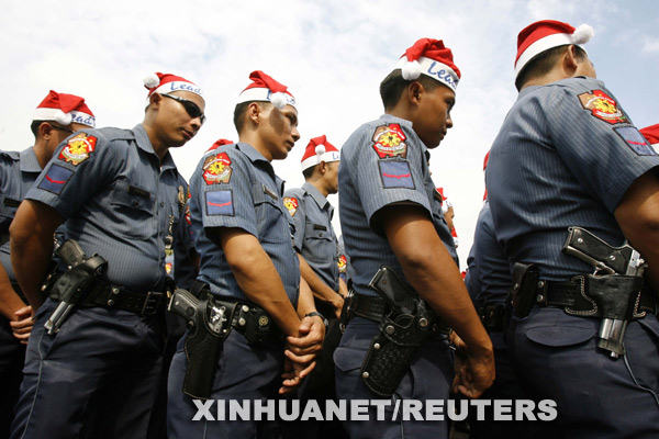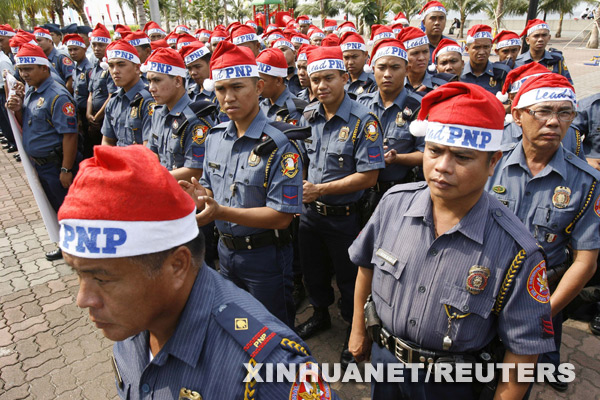 12月2日,在菲律賓馬尼拉,菲律賓警察頭戴圣誕老人的帽子參加“圣誕老人警察2008”活動(dòng)啟動(dòng)儀式。新華社/路透 | |