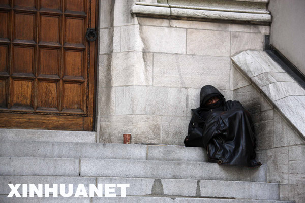 12月5日,美國(guó)勞工部公布的數(shù)據(jù)顯示,今年11月份美國(guó)非農(nóng)業(yè)部門就業(yè)崗位減少53.3萬個(gè),為1974年12月份以來的最大減幅,失業(yè)率上升到6.7%,為15年來的最高點(diǎn)。這是11月11日,一名流浪漢在美國(guó)紐約曼哈頓街頭露宿。 | |