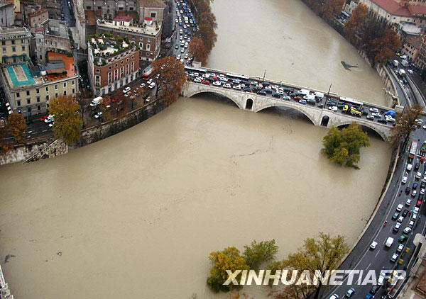 這張12月12日發(fā)布的照片顯示,意大利首都羅馬的臺伯河水位高漲。連日大雨和雷暴天氣擾亂了羅馬的交通,并導致1人死亡。羅馬市長詹尼·阿萊曼諾宣布羅馬進入緊急狀態(tài)。 新華社/法新