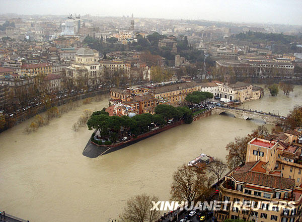 12月12日,在意大利首都羅馬市中心,環(huán)繞蒂貝里納島的臺伯河水位高漲。連日大雨和雷暴天氣擾亂了羅馬的交通,并導致1人死亡。羅馬市長詹尼·阿萊曼諾宣布羅馬進入緊急狀態(tài)。新華社/路透