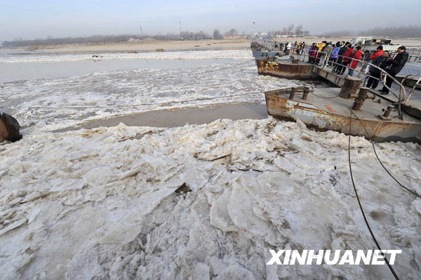 12月23日,市民在黃河濟南濼口段觀賞流凌。受較強冷空氣影響,自12月22日凌晨,黃河濟南段出現(xiàn)今冬首次淌凌現(xiàn)象,較去年冬天首次淌凌提前了23天。目前,濟南黃河河務(wù)局已全面恢復(fù)24小時防凌值班制度,密切關(guān)注凌情變化。
