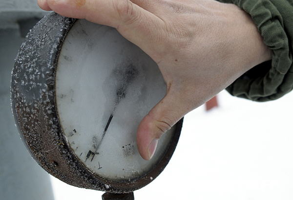 1月7日,在斯洛伐克東部城鎮(zhèn)大卡普沙尼一處邊境天然氣站,一名員工查看讀數(shù)為零的氣壓表。新華社/法新