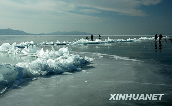 1月13日在天津于橋水庫拍攝的冰凌景觀。連日的低溫天氣使于橋水庫的冰層迅速增厚,由于冰體有冷漲特性,水庫中間冰帶大面積隆起,形成了蜿蜒曲折的冰凌奇觀。