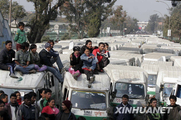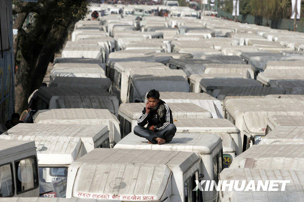 1月15日,在尼泊爾首都加德滿都,電動(dòng)車司機(jī)坐在車頂上參加抗議活動(dòng)。當(dāng)日,電動(dòng)車司機(jī)們將他們駕駛的車輛停放在加德滿都的道路上,呼吁政府為他們提供穩(wěn)定的電力供應(yīng)。自本月11日起,尼泊爾的電力短缺問題日漸嚴(yán)重,商業(yè)和住宅用電每天中斷16個(gè)小時(shí)。