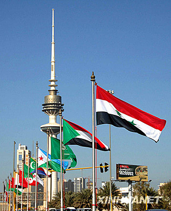 1月18日,阿拉伯國家聯(lián)盟(阿盟)成員國的旗幟在科威特首都科威特城街頭飄揚。1月19日至20日,首屆阿拉伯國家經(jīng)濟峰會將在科威特舉行。