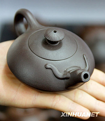 這是1月30日在北京大柵欄老字號(hào)廣德樓拍攝的一款牛頭紫砂小壺,這款壺造型生動(dòng)可愛(ài),受到顧客青睞。