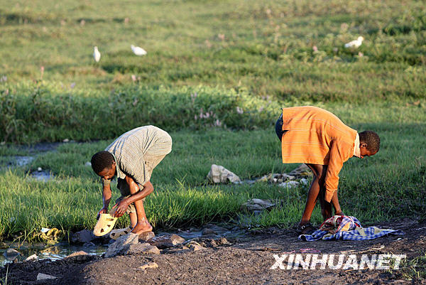 2月3日,在埃塞俄比亞首都亞的斯亞貝巴郊區(qū),一名男子在一條水溝旁洗鞋,而他的同伴用同樣的水洗臉。供水設(shè)施的匱乏使得當(dāng)?shù)匾恍┚用癫坏貌幻咳杖プ∷浇乃蛐∠乘kS著非洲大陸總體政治局勢(shì)趨于穩(wěn)定,許多非洲國(guó)家都將基礎(chǔ)設(shè)施建設(shè)作為振興經(jīng)濟(jì)的優(yōu)先發(fā)展方向,“非洲基礎(chǔ)設(shè)施建設(shè)”也是目前正召開的第12屆非洲聯(lián)盟(非盟)首腦會(huì)議的主題。 |