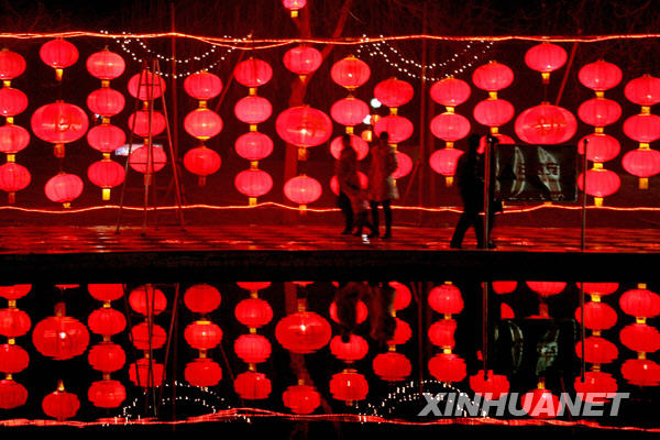2月2日,永濟市民在櫻花公園觀賞“紅燈墻”。近日,山西省永濟市櫻花公園用紅燈籠組成“紅燈墻”、“紅燈走廊”等藝術(shù)燈組,迎接元宵佳節(jié)的到來。