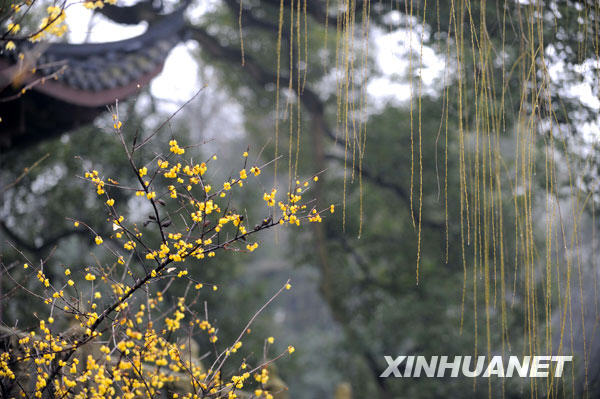 西湖風(fēng)景區(qū)孤山公園內(nèi)的美麗春意(2月4日攝)。