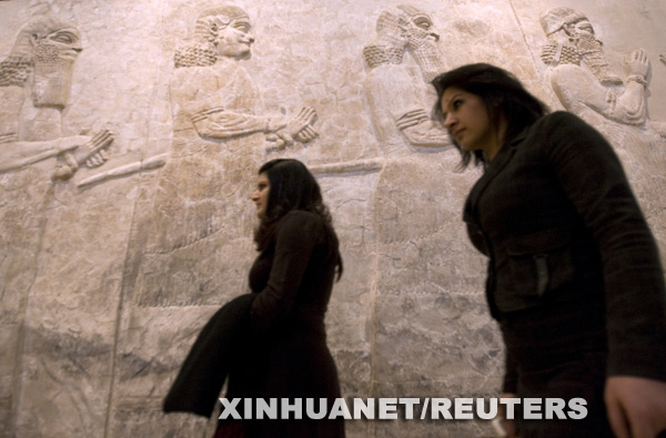 2月23日,在位于伊拉克首都巴格達的伊拉克國家博物館,參觀者從亞述時代的雕刻作品前走過。當天,伊拉克戰(zhàn)爭后因遭到大肆搶掠而關(guān)閉近6年的伊拉克國家博物館在巴格達重新開放,展出了數(shù)千件珍貴文物,其中很多是從國外歸還的被搶掠文物。伊拉克國家博物館始建于20世紀20年代,是伊拉克最早建立、藏品最豐富的博物館,被聯(lián)合國教科文組織列為世界第11大博物館。新華社/路透 |