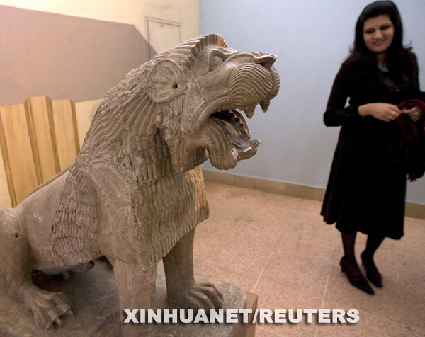 2月23日,在位于伊拉克首都巴格達的伊拉克國家博物館,一名女子欣賞一座巴比倫時期的獅子雕塑。新華社/路透 | |