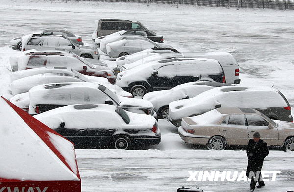3月2日,在美國紐約,一名男子從被積雪覆蓋的停車場走過。