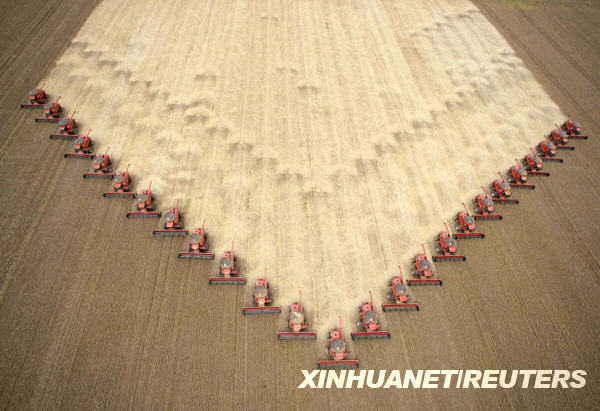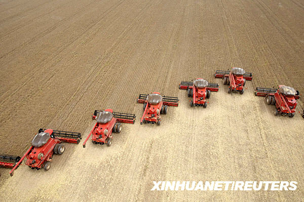 3月5日,工人駕駛收割機在巴西馬托格羅索州的一個農(nóng)場收割大豆。2008/2009年度巴西大豆產(chǎn)量估計約為5720萬噸。新華社/路透