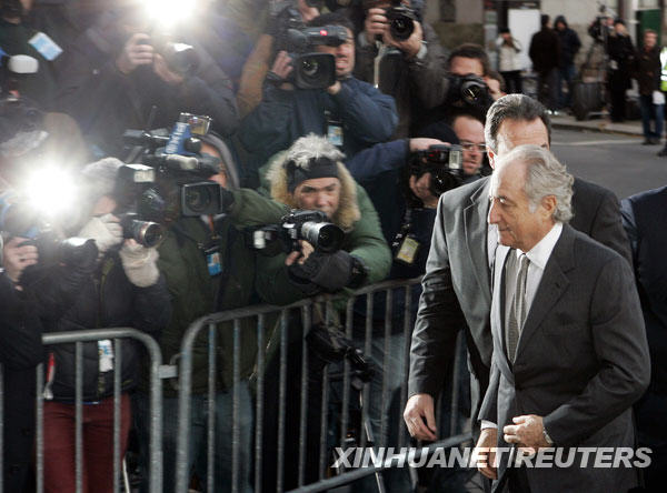 3月12日,在美國紐約,美國巨額金融詐騙案嫌疑人伯納德·麥道夫(右)抵達(dá)聯(lián)邦法庭準(zhǔn)備出庭。麥道夫的律師艾拉·索金10日在法庭上說,麥道夫擬于12日聽證會上對全部11項(xiàng)罪名指控承認(rèn)有罪。他可能因此面臨最高150年監(jiān)禁。 新華社/路透