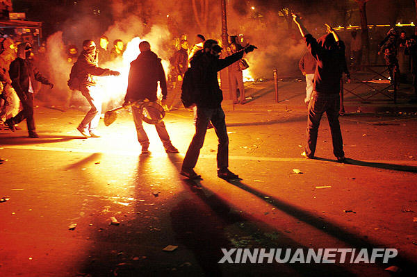 3月19日,人們?cè)诜▏?guó)巴黎街頭示威。法國(guó)各大工會(huì)當(dāng)日在全國(guó)各地聯(lián)合組織罷工和示威游行等活動(dòng),抗議政府在應(yīng)對(duì)當(dāng)前經(jīng)濟(jì)危機(jī)過(guò)程中忽視勞動(dòng)者權(quán)益和社會(huì)福利。新華社/法新